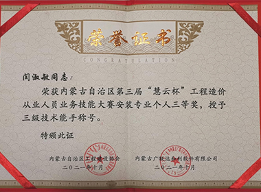 我司闫淑敏获得《内蒙古自治区第三届“慧云杯”工程造价从业人员业务技能大赛》个…