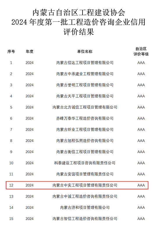 2024-07-3014542 次近期,米兰官方版入口参加内蒙古自治区工程建设协会组织的“2024年度第一批工程造价咨询企业信用”申报,获得“信用AAA级证书”。米兰官方版入口成立多年以来,遵循中国工程造价管理协会对造价咨询企…